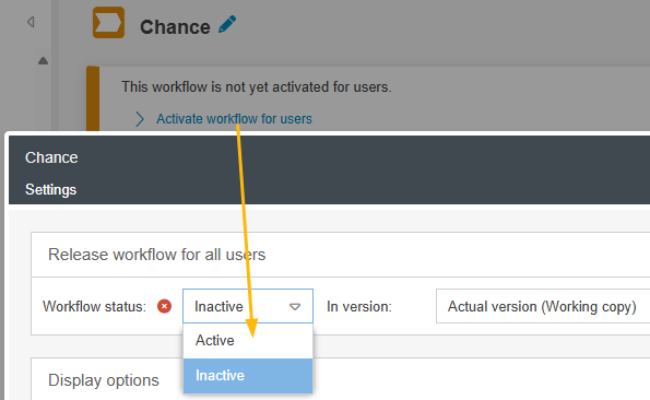 Activate workflow processes for users | If this option is enabled, users can activate self-created or imported workflows so that other people can use them. ![]() |