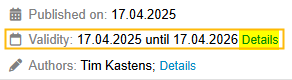 Manually edit validity of processes as process owner or process manager | If this option is active, the users who are defined as process owners or process managers in the process details can manually extend the validity of this process, regardless of whether the object is still valid or the validity has already expired. ![]() |