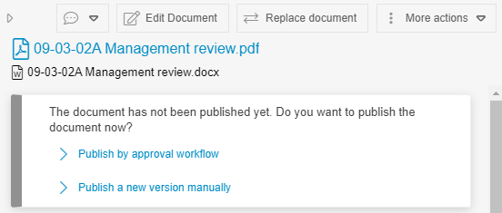 If the document has not yet been published or contains unpublished changes, you are offered to publish it.