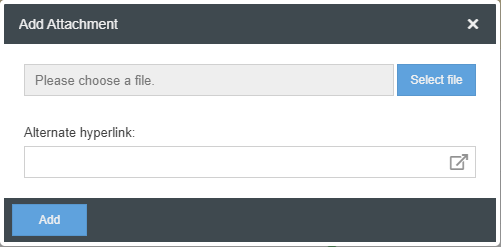 In the window that opens, you can decide whether you want to use <Select file> to select a file from your drive or use a hyperlink to point to the file attachment in an existing document management system.