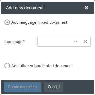 If you want to add your document in an additional language, select the language of the new document to be created. In this case, the new document will not have a consecutive document number, but will be created with the same number of the existing document plus the attached language code for the selected language.