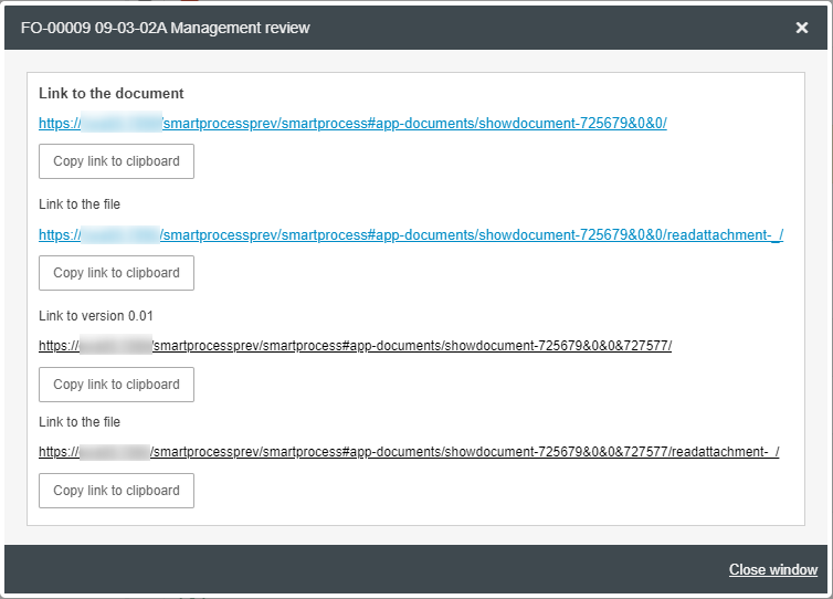 - Link to the file -> Similar to the previous point, this link directly opens the most current version of the file attachment of the document in the browser preview or starts the download of the file if no preview is available.