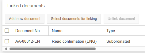 When you link a document, it is displayed as "Subordinated" to the existing document. Since there is a mutual relationship between the documents, the type of the linked document is displayed as "Superordinated".