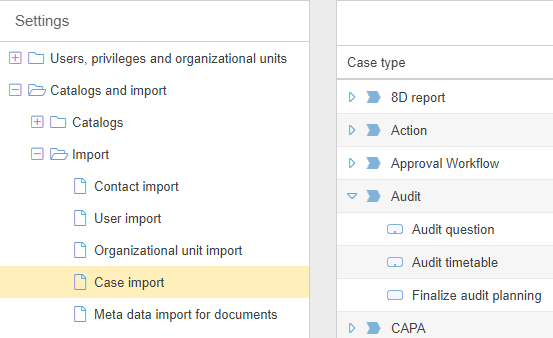 So, to change the data of audit no. 12345, in the import file the column Case number must exist and contain the value 12345 in one row.