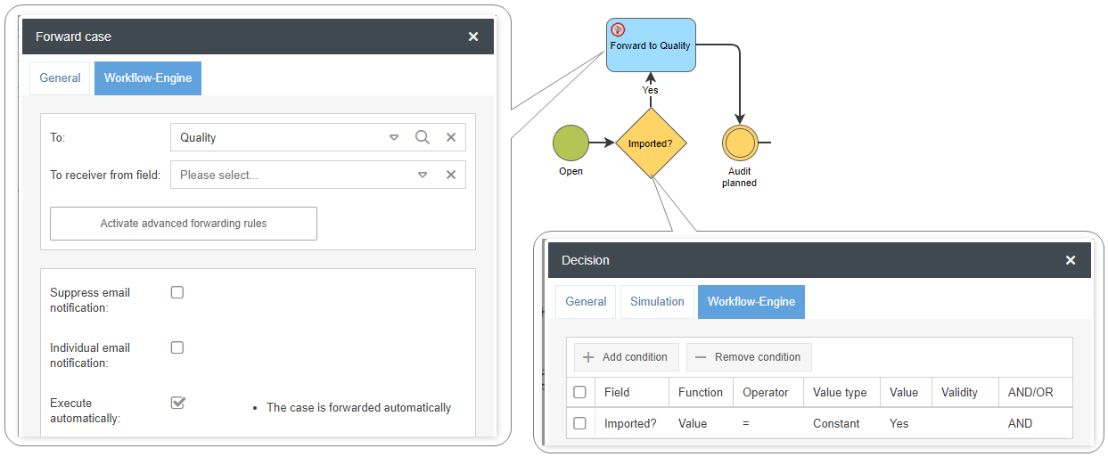 - In the form designer of the audit workflow, the 'Process' field has been marked as unique for import so that an import does not create multiple audit cases for the same process.