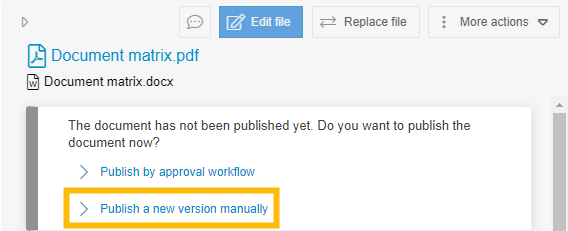 Direct publishing of documents without the approval workflow | If this option is enabled, the users may publish documents without having to be confirmed by other people as reviewers or approvers as part of the approval workflow. ![]() If the option is disabled, users are only allowed to publish documents using the approval workflow. |