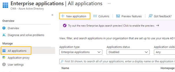 - Log in to your Azure portal as an administrator and open your Active Directory / Enterprise Applications.