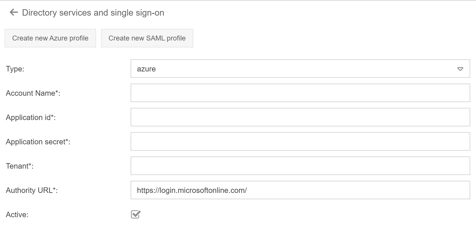 - Subsequently, the Azure profile can be created in SmartProcess. Without the LDAP / AD add-on module, the following data is required.