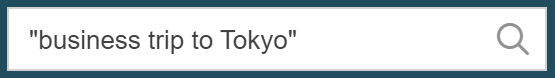 ![]() | Shows results that contain exactly the (partial) phrase in quotation marks. Without the quotation marks, the system would search for results that contain either the term "business", "trip", "to" or "Tokyo" |