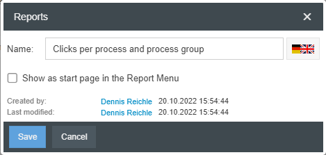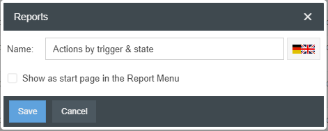 Name | The name of the saved report can be entered in all activated system languages. The report will then appear under this name in the list of all saved reports. |