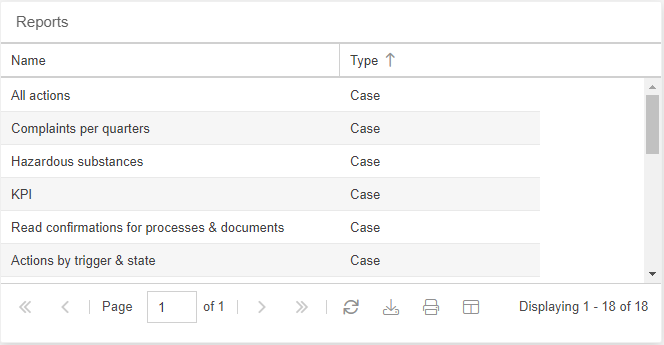 In the navigation area of the Reporting menu, all available reports are displayed to the user in alphabetical order. These can be executed by left-clicking.