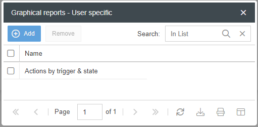 By selecting <User specific> you will first get a list of all graphical reports that are currently only displayed for yourself in the window.
