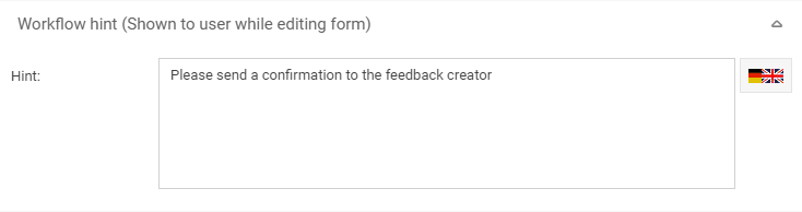 In the "Hint" field, you can enter a hint text that will be displayed below the e-mail message step to be performed manually.