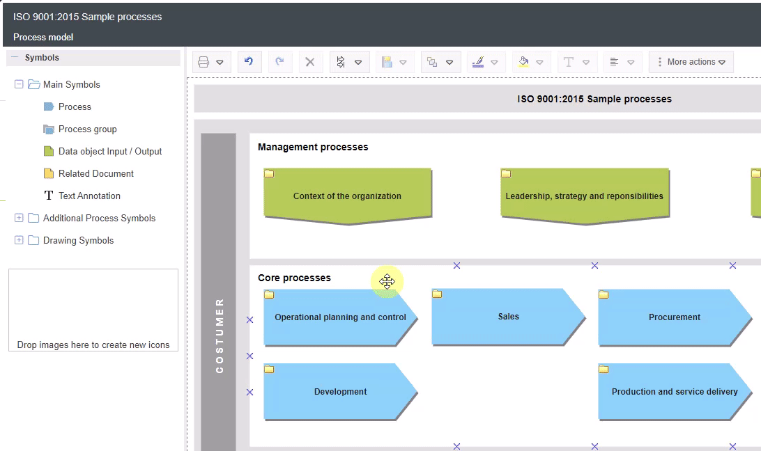 - If the Adjacent process object is modeled in the process model, the number of the process is now displayed in the icon, if a number has been assigned.