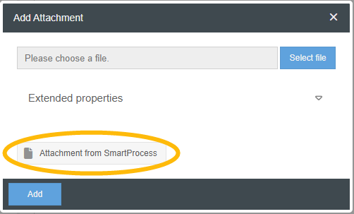 - In many places where attachments can be added, it is now possible to access file attachments of SmartProcess documents, e.g. in the menus Contacts, Catalogs, the Knowledge Base or ad hoc e-mails in cases.