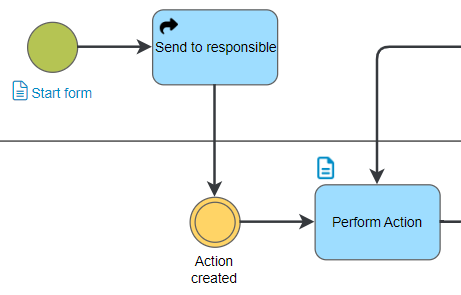 - In the process model of a workflow, the start form / main form can now be opened for editing via a link at the start event, or the activity form can be opened by clicking on the form icon at an activity